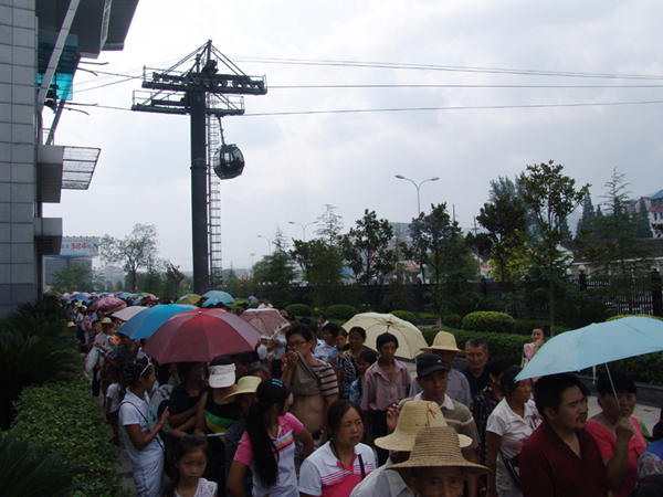 因?yàn)橛兄皆缭津\(chéng)的說(shuō)法,從凌晨5點(diǎn)開(kāi)始,就有人陸續(xù)在索道下站排隊(duì)等候,凌晨6點(diǎn),等候排隊(duì)的本地居民已達(dá)到了1000余人。天門(mén)山公司根據(jù)以往的經(jīng)驗(yàn),已提前一周從各個(gè)細(xì)節(jié)上做好了預(yù)案,包括:在硬件設(shè)施上,提前對(duì)索道進(jìn)行全面檢查,并在這一天將96個(gè)索道轎廂全部啟動(dòng),并將索道以6米\秒的速度全速運(yùn)行,以在最短的時(shí)間運(yùn)送最多的游人;在市場(chǎng)宣傳上,提前向所有的旅行社發(fā)送短信和傳真,讓大型團(tuán)隊(duì)盡量避開(kāi)這一天,避免擁擠;在本地居民跟游客的關(guān)系處理上,分開(kāi)不同的售票點(diǎn)及侯票處,以防不必要的沖突;在軟件服務(wù)上,執(zhí)行全體員工凌晨6點(diǎn)統(tǒng)一上崗,公司相關(guān)領(lǐng)導(dǎo)及一些特殊的崗位甚至凌晨4、5點(diǎn)就已上崗,所有的準(zhǔn)備只為給游人提供最好的服務(wù)。