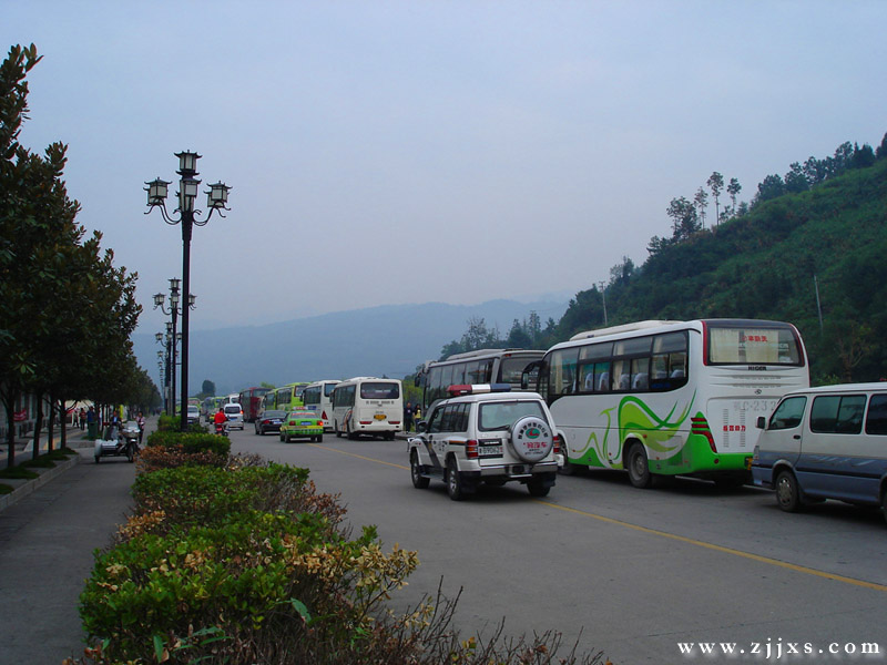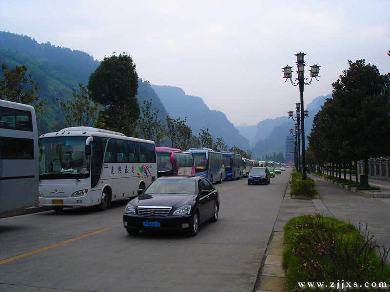 (武陵源大道上自駕車在交警的指輝下,有序?浚