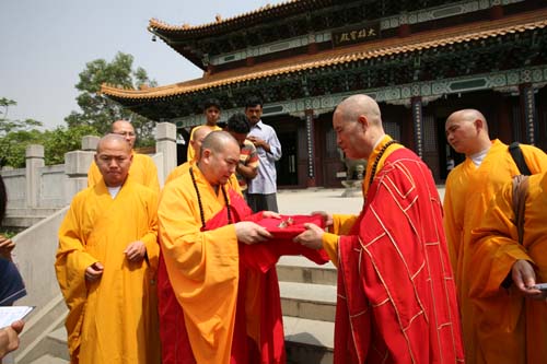 中華寺懷善方丈贈與天門山寺懷梵方丈珍貴舍利