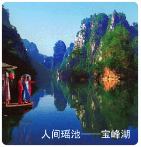 世界自然遺產------寶峰湖:被稱為“世界湖泊經典”,地處張家界武陵源風景名勝區(qū)的核心地帶,距天子山8KM,距武陵源區(qū)政府1.5KM,距黃龍洞8KM。寶峰湖風景區(qū)集山水于一體,融民俗風情于一身,尤以奇秀的高峽平湖絕景、“飛流直下三千尺”的寶峰飛瀑、神秘的深山古寺聞名。