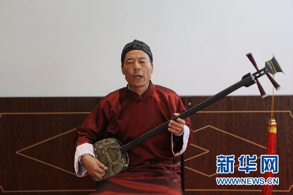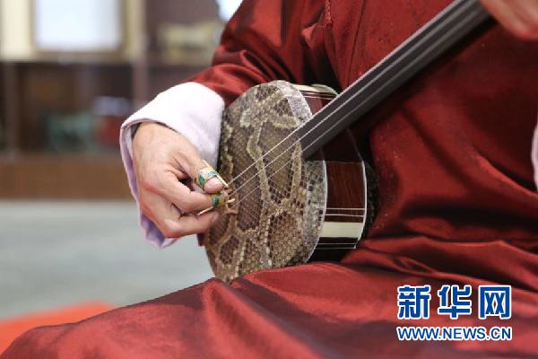 這是涼州賢孝的演奏樂器三弦。新華社記者 耿馨寧 攝