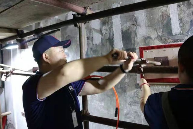 △1963年,配合巖體加固壁畫揭取。(敦煌研究院提供)