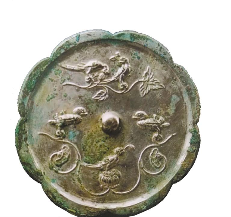 隋唐時(shí)期是中國封建政治經(jīng)濟(jì)文化高度發(fā)展繁榮的時(shí)期,唐代社會(huì)經(jīng)濟(jì)全面發(fā)展,手工業(yè)各部門也都興旺發(fā)達(dá),青銅鑄造業(yè)中的銅鏡業(yè)尤為突出,無論造型、題材、紋飾、鑄造工藝,都突破了前代的模式,達(dá)到了中國古代銅鏡藝術(shù)的巔峰。唐鏡鏡型厚實(shí),方形鏡、菱花形鏡、葵花形鏡流行;紋飾題材多見瑞獸、飛鳥以及葡萄、花草等;瑞獸葡萄鏡最具特色,是中西文化融合的杰作。