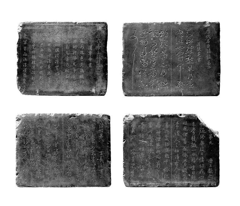 恰好此時金石摹刻家溫如玉、張應召師徒重摹上石,肅憲王遂決心公諸天下,傳于后世。溫、張師徒二人受肅憲王之命摹刻“宋本”《淳化閣帖》,選定石質密致,具青灰色,擊之有鏗鏘聲的富平“銅磬石”,鐫刻碑帖。