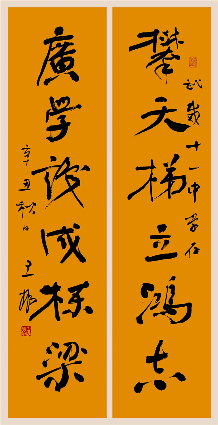 莫言擬聯(lián)、書法家王振撰寫作品:攀天梯立宏志,廣學識成棟梁