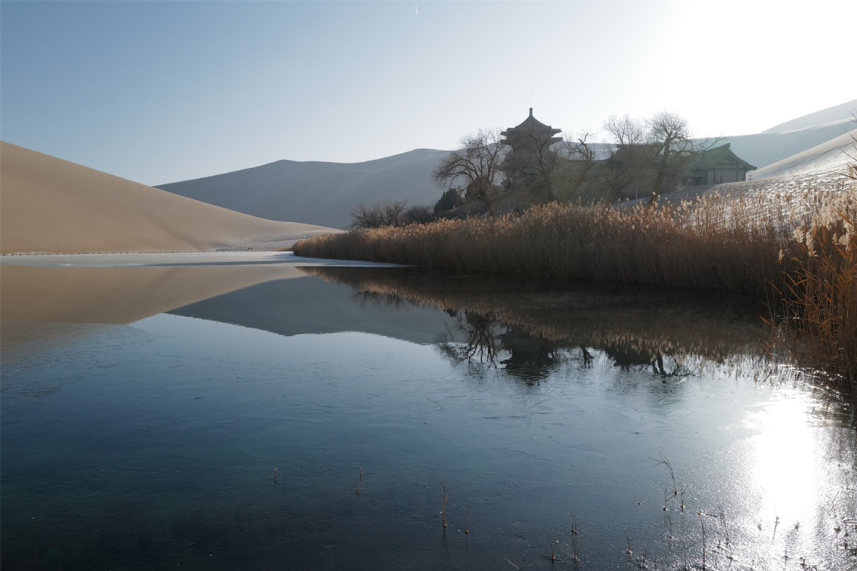 圖為:12月11日,落雪后的月牙泉靜美如畫(huà)。