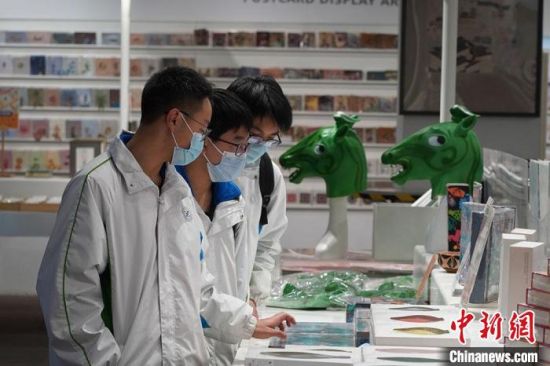 1月14日,甘肅省博物館文創(chuàng)中心的銅奔馬頭套吸引參觀者駐足觀看。連日來,甘肅省博物館文創(chuàng)中心推出的以銅奔馬為主題的文創(chuàng)產(chǎn)品,如“神馬來了”銅奔馬頭套,“綠馬”出行口罩等產(chǎn)品備受歡迎。
