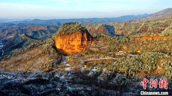 麥積山風景區(qū)是中國南北方沉積地層在地表上層的分界線,又是黃河長江兩大流域的分水嶺,雪后景色地貌獨特。 周文濤 攝