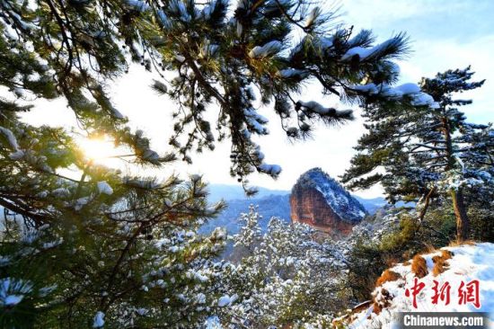 麥積山風景區(qū)是中國南北方沉積地層在地表上層的分界線,又是黃河長江兩大流域的分水嶺,雪后景色地貌獨特。周文濤 攝