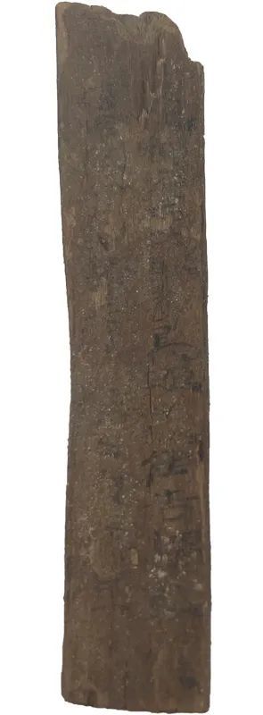 木簡(jiǎn)1枚(出土編號(hào):Ⅱ90DXT0213③:135),1990年出土于敦煌懸泉置遺址。長(zhǎng)7.2、寬1.3、厚0.25厘米。木簡(jiǎn)上殘,兩行書寫,字跡模糊,難以辨識(shí)。簡(jiǎn)文作“二人。使都護(hù)西域騎都尉、安遠(yuǎn)侯吉謂敦煌……駕,當(dāng)舍傳舍,如律令。三月甲寅過(guò),東。”。簡(jiǎn)中“使都護(hù)西域騎都尉”是西域都護(hù)的正式官名,“騎都尉”當(dāng)指以本官都護(hù)西域,是其本職,而“使”則突出了使職性質(zhì)。這是懸泉置記錄的一份傳文書,簡(jiǎn)文不完整,大意是說(shuō)某年三月甲寅日,西域都護(hù)鄭吉派遣的使者自西向東行,懸泉置依傳律規(guī)定,為停駐的兩名使者提供了飲食。該簡(jiǎn)文對(duì)研究懸泉置的傳舍制度,以及西漢王朝對(duì)西域行使管轄提供了重要的原始資料?,F(xiàn)藏甘肅簡(jiǎn)牘博物館。