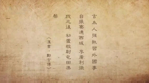 今天“甘肅簡(jiǎn)牘之西域往事”的主人公鄭吉,《漢書》有其傳。為其作傳的班固在文中對(duì)鄭吉的評(píng)語(yǔ)中,有一句為我們耳熟能詳?shù)脑挘?/p>