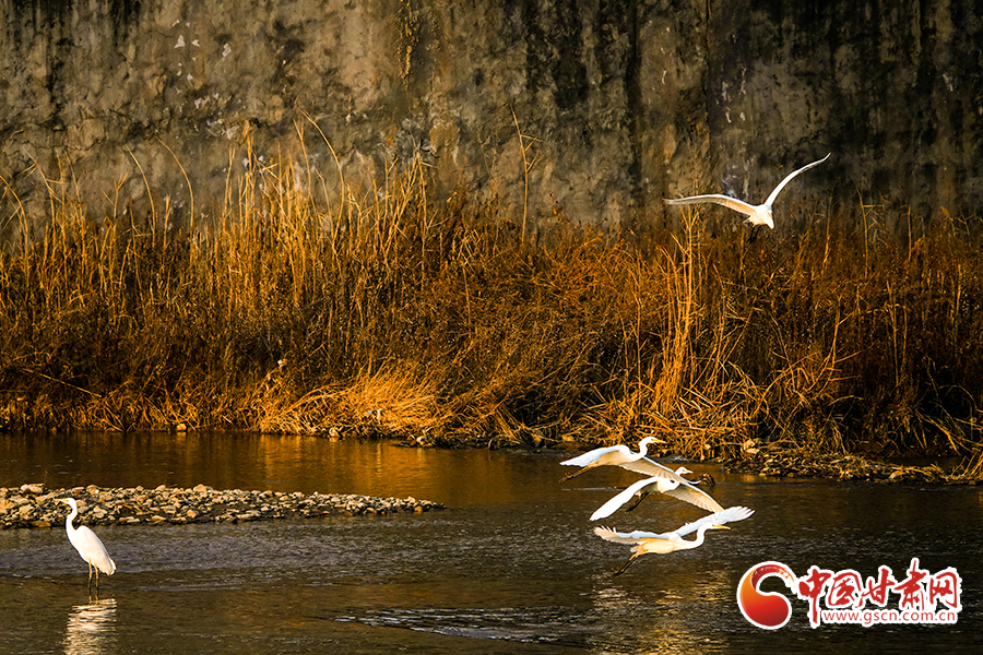 冬日暖陽下,平?jīng)鍪谐缧趴h汭水河畔,波光與白鷺互為輝映,勾勒出一幅人與自然和諧相處的生態(tài)畫卷。