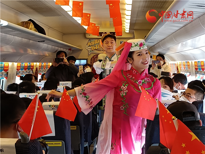 飛天與花兒相擁,甘肅與寧夏直通。蘭銀高鐵中蘭段開通,也讓銀蘭高鐵全線貫通。為了慶祝這一歷史時(shí)刻,D9058次列車乘務(wù)組準(zhǔn)備了精彩的節(jié)日。《花兒與少年》展演寧夏風(fēng)情,遇見塞上花開。敦煌樂舞,充滿甘肅元素講述飛天故事,巧妙的節(jié)目安排生動(dòng)地展示了甘肅、寧夏兩省區(qū)的文化元素,讓旅途不僅有一路風(fēng)光,更有一路風(fēng)情。