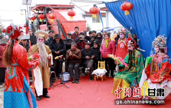 中新網(wǎng)甘肅新聞2月8日電 (朱玲)農(nóng)歷正月,走進華亭市西華鎮(zhèn)西塬村,山村隱掩處,遠遠聽聞古樸蒼勁的戲曲腔調(diào)傳來。村部院落里,村民或站或蹲,里三層外三層地將表演者圍了個水泄不通。