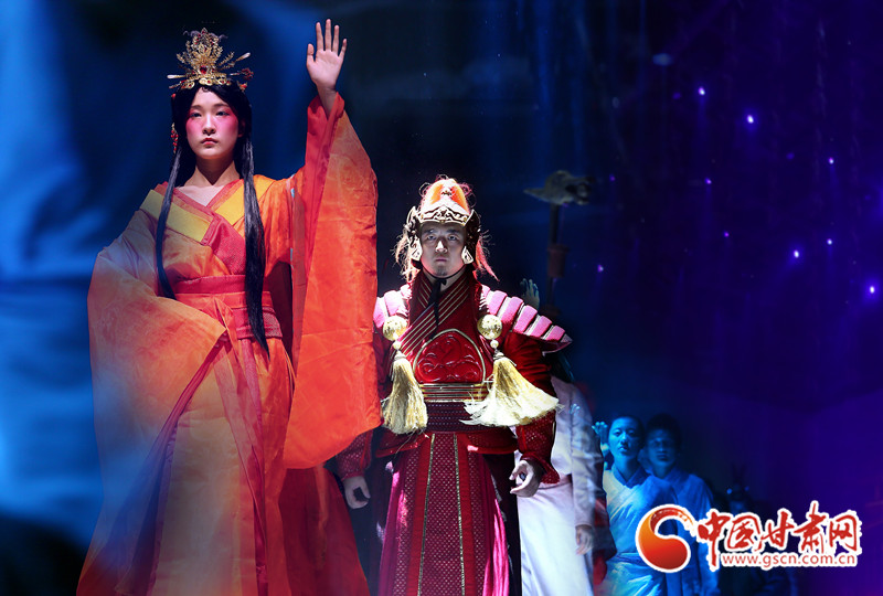 第一表演區(qū)里,T臺(tái)一般的大道實(shí)際上是意象化的絲綢之路,走過(guò)絲路、穿過(guò)黃沙,最令人感動(dòng)的還是當(dāng)張騫、張儀潮、米薇、王潮歌、叢明玲、張冬、王兒將……這些名字響起時(shí),眾聲回答的那一聲‘在’,意味著今天民族文化的傳承者們同在。