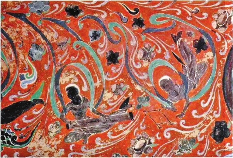 公元421一433年間,北涼占據(jù)了敦煌,莫高窟也第一次正式開始大規(guī)模的營造。這次營造活動的內(nèi)容,包括268、272窟的改建和275窟的新建,以及三個洞窟按各自的功能統(tǒng)一計劃和安排繪制了壁畫和塑像。這樣,莫高窟崖壁上首次出現(xiàn)了一組可供僧侶們禪修、朝拜與進(jìn)行大眾佛教活動的獨(dú)具特色而又有一定規(guī)模的佛教建筑。整體北朝時期,莫高窟所營造的洞窟,在崖面上以十六國時代的三個洞窟為中心向南北兩邊擴(kuò)展延伸,南面接268窟向南至246窟,其中256窟為后代擴(kuò)建;北面接275窟向北,分上下兩層,上層從454窟周圍開始至428窟,下層285窟開始至305窟(該層為現(xiàn)存崖面上的一介夾層,北至321窟,南至65窟)。這三條線上的洞窟加起來共有50多座。另外,這些洞窟都是懸空開鑿。當(dāng)時,莫高窟曾有過在崖面的最底層營造洞窟的嘗試。例如487、488、489諸窟與北涼、北魏窟在同一垂直面上,低于現(xiàn)在的地面五米左右,洞窟地面可能與當(dāng)時的大泉河床底面平行,因其無法解除洪水和積冰給其帶來的危害,不久這些洞窟被廢棄不用,以后也未曾再于這一平面營造過洞窟。隋代的莫高窟崖面,是在先代窟群崖面的基礎(chǔ)上向南北兩頭拓展。當(dāng)時莫高窟崖面上的洞窟是上下兩層,上層248窟至428窟一段,下層285窟至305窟一段。隋代開始,上層接428窟向北,營造了427窟至376窟一段,接248窟向南營建了246、244、242諸窟;下層即現(xiàn)在崖面上的夾層,接305窟向北營造了306窟至317窟一段,接285窟向南修建了282窟至64窟一段。經(jīng)過隋代的營造,莫高窟窟群崖面已較完整而又頗具規(guī)模,上下兩層洞窟懸空開鑿在600多米長的崖面上,上層南起242窟,北至376窟,下層南起64窟,北至317窟,共計窟龕大小140余。同今天密密麻麻如同蜂窩似的崖面比起來,當(dāng)時崖面上的景致則獨(dú)具一格。這種情況在敦煌周圍其他一些小型石窟群中至今還可看到。