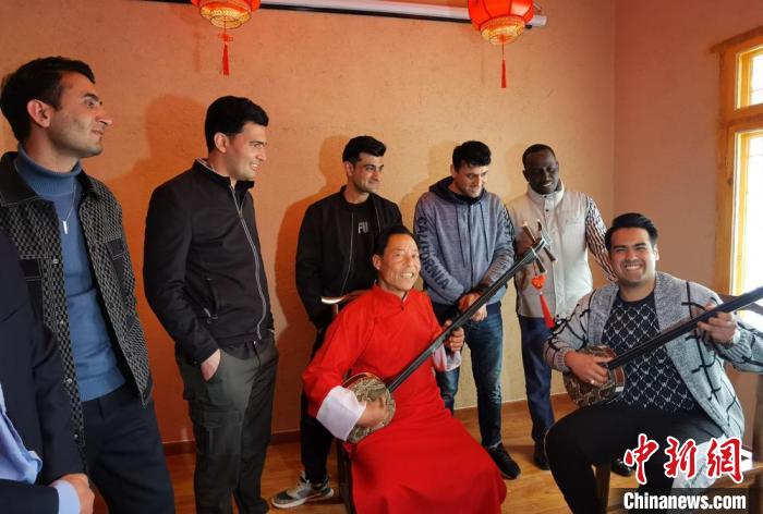 圖為5月9日,外籍游客體驗三弦伴奏的“涼州賢孝”?!〈魑牟?nbsp;攝
