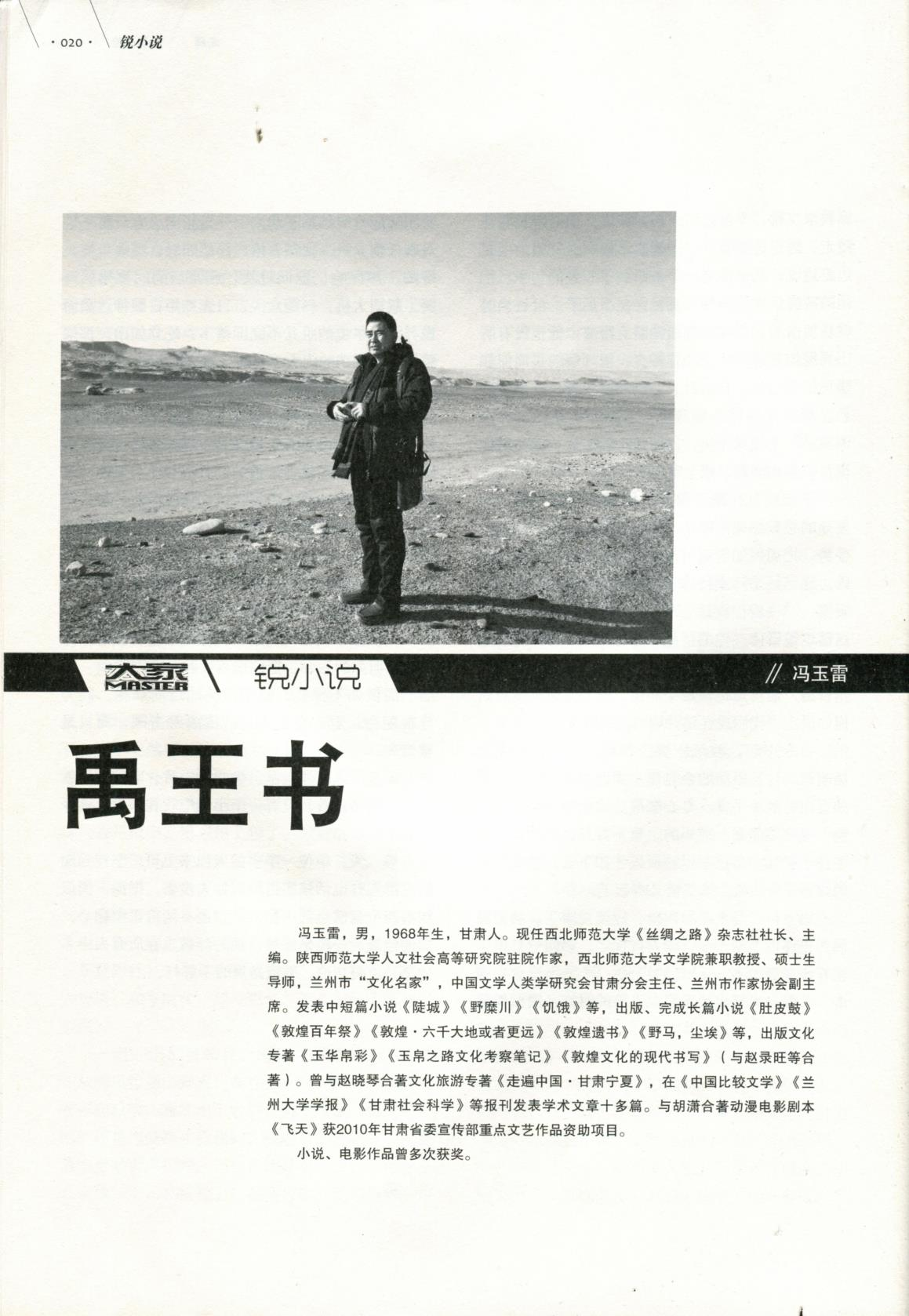 馮玉雷,畢業(yè)于陜西師范大學(xué)中文系,現(xiàn)任甘肅文化發(fā)展研究院常務(wù)副院長(zhǎng)。一級(jí)作家。陜西師范大學(xué)人文社會(huì)科學(xué)高等研究院特聘駐院作家,上海交通大學(xué)神話學(xué)研究院學(xué)術(shù)委員,蘭州金城文化名家,中國(guó)比較文學(xué)學(xué)會(huì)文學(xué)人類學(xué)研究會(huì)理事。中國(guó)作家協(xié)會(huì)會(huì)員。馮玉雷自2006年開始研究玉玉器和玉文化,在《甘肅社會(huì)科學(xué)》《寧夏社會(huì)科學(xué)》《中國(guó)社會(huì)科學(xué)報(bào)》《中國(guó)藝術(shù)報(bào)》等報(bào)刊發(fā)表玉文化學(xué)術(shù)論文多篇。出版長(zhǎng)篇小說(shuō)《敦煌·六千大地或者更遠(yuǎn)》《敦煌遺書》《野馬,塵?!贰队硗鯐芳坝裎幕瘜V队袢A帛彩》《玉帛之路文化考察記》《條條玉路通昆侖》等。中篇小說(shuō)《禹王書》入圍第八屆魯迅文學(xué)獎(jiǎng)。榮登《大家》2020年第1期封面人物。