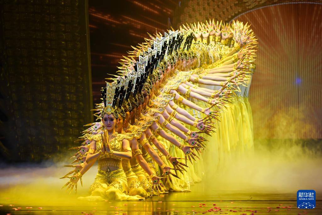今年以來,脫胎于敦煌文化的洞窟沉浸式體驗劇《樂動敦煌》、室內情景體驗劇《又見敦煌》、沙漠實景演出《敦煌盛典》和中國殘疾人藝術團情景音畫劇《千手千眼》四場劇目在絲路名城甘肅敦煌同步上演,劇目將敦煌歷史底蘊、服飾文化、樂舞文化等生動融合,為游客呈現(xiàn)出精彩絕倫的敦煌文化視覺盛宴,深受中外游客喜愛。截至8月10日,四大劇目今年已累計演出1175場次,觀看游客突破66萬人次。其中,《千手千眼》以中國殘疾人藝術團音樂舞蹈詩《我的夢》為藍本,融合莫高窟第3窟等敦煌壁畫元素創(chuàng)編而成,50名聽障或視障演員通過音樂、舞蹈和多媒體等形式創(chuàng)新講述了“妙善救父”的民間故事,是特殊藝術與敦煌文化的融合。