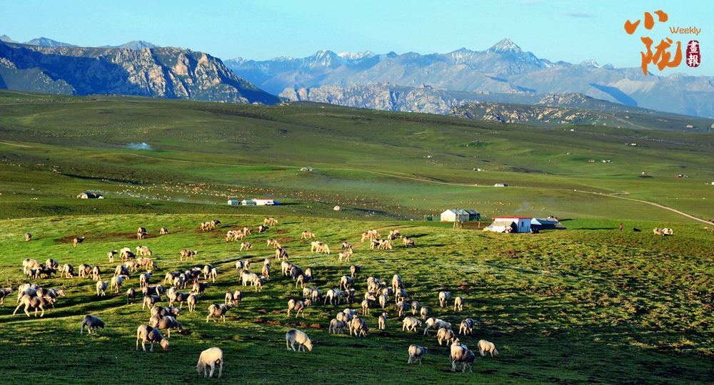 祁連山下綠草如茵,牛羊點綴其中,別具風情。