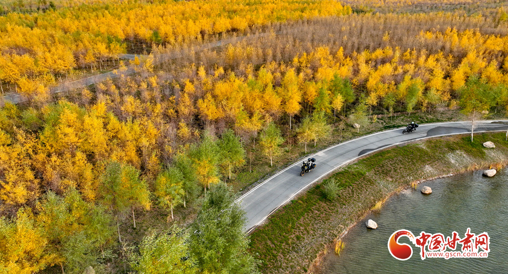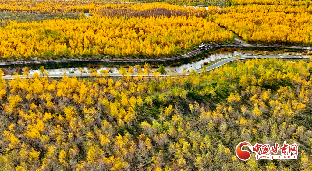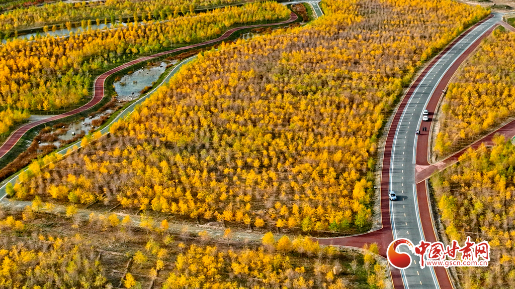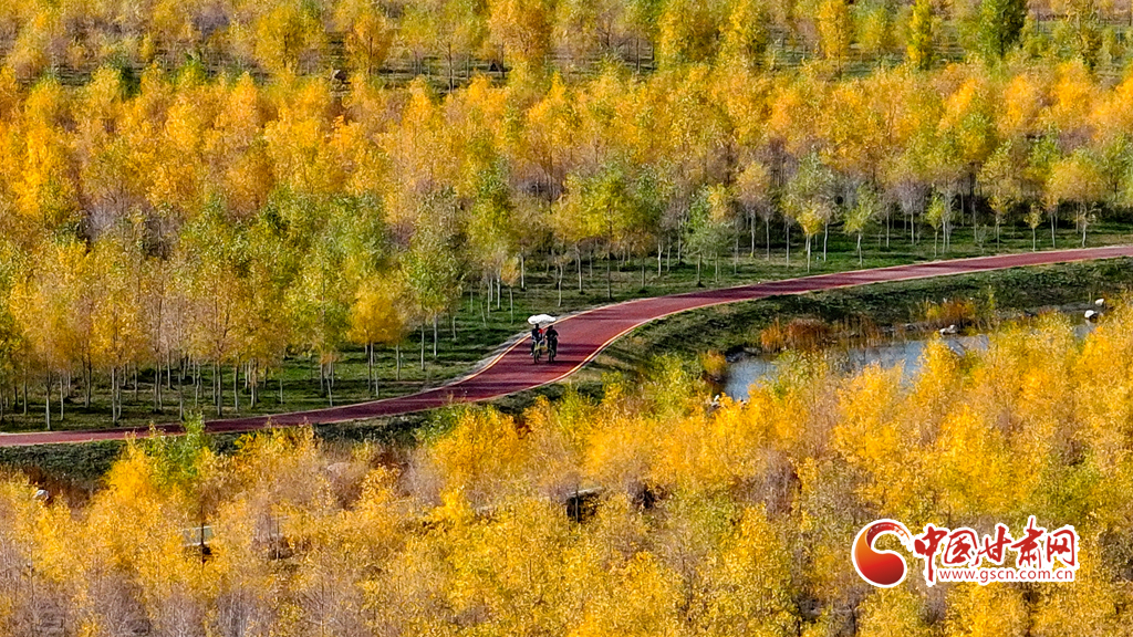 10月16日,甘肅省張掖奧林匹克森林公園萬(wàn)畝人工胡楊林景區(qū)內(nèi),層林盡染、碧水環(huán)流,成為游客和市民欣賞美景和健魄身心的好去處。