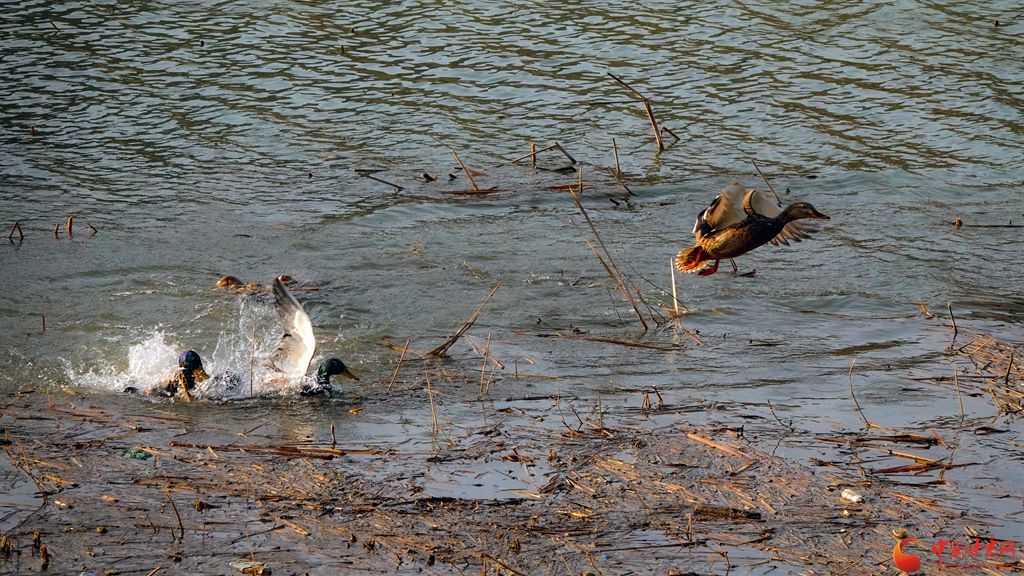 冬日的崇信縣龍澤湖,枯殘的荷葉、蓮蓬與枝干倒映水中,一株株枯荷挺著一身風(fēng)骨靜靜地佇立在湖中,鳳頭鸊鷉、鴛鴦、秋沙鴨、赤麻鴨等成群結(jié)隊(duì)的候鳥在枯荷間嬉戲,舞出了不一樣的冬韻。