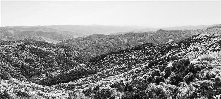 離開黃帝陵園,沿省道繼續(xù)行進,逐漸進入了高原林海。四面山川勾連,丘谷交織,全被森林覆蓋。無數(shù)高峻的山嶺如群龍盤繞,道道山脊線條分明,錯落有致,茂密的林木在冬寒中襯成一派青藍(lán)底色,常綠的松柏又在林海中開拓出成片蒼翠。極目遠(yuǎn)望,在正午的陽光照耀下,林海風(fēng)煙彌漫,顯出一種天地間的浩然之氣。