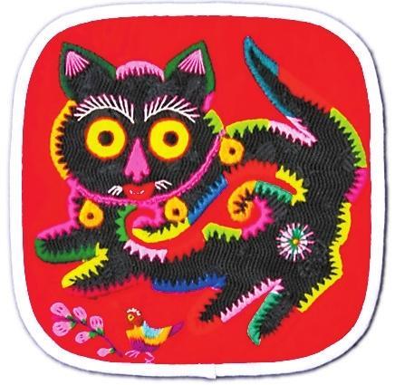 華池民間布貼畫是一種古老的民間工藝美術,是隴東文化的重要組成部分。華池拼布創(chuàng)作以粗布為原料,色彩豐富鮮艷,剪貼的邊線明朗整潔,富有木刻版畫的刀木特點。其內(nèi)容多取材于人物、動物、花鳥等題材,注重色彩對比,以大紅大紫的色彩,夸張化的描述,追求強烈的直觀效果,講究裝飾性;風格浪漫稚拙,渾厚質(zhì)樸,氣韻生動。