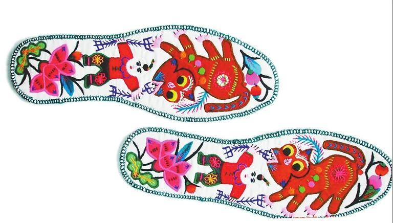 拼布與刺繡結合的鞋墊