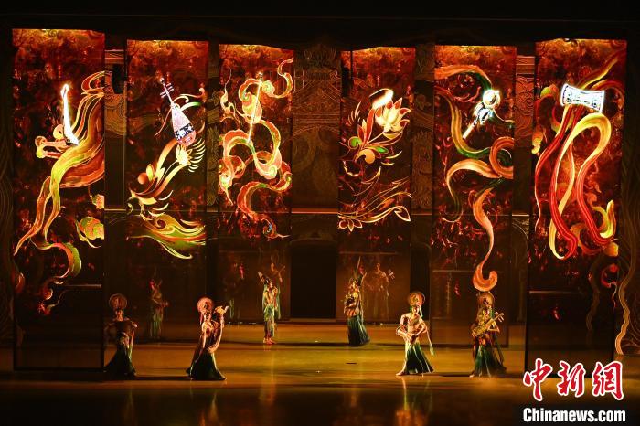 資料圖:2023年10月9日晚,演員在大型洞窟式沉浸體驗(yàn)劇《樂動(dòng)敦煌》中表演。張曉亮 攝