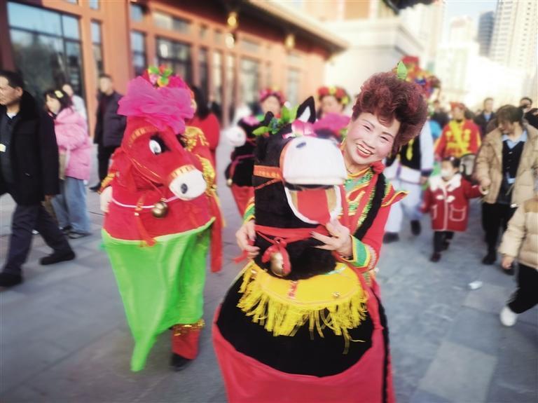 從臘月二十三開始,蘭寶平幾乎每天都要參加表演,與記者見(jiàn)面時(shí),已是當(dāng)天她在蘭州老街的第四場(chǎng)表演。一天下來(lái),她從東扭到西,出老街進(jìn)廣場(chǎng),每到一處都是人們歡樂(lè)的源泉和目光的焦點(diǎn)。