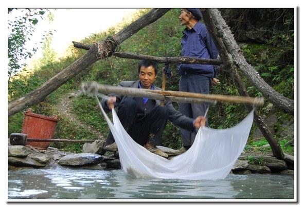 在大山深處,工業(yè)文明似乎從來(lái)沒(méi)有染指這里,村民們用最簡(jiǎn)單最原始的工具,最繁復(fù)的工藝制造著純天然的手工土紙。“七十二道手,上墻還要吹一口。”這樣的工序完全就是《天工開(kāi)物》七十二道工序的再現(xiàn)。