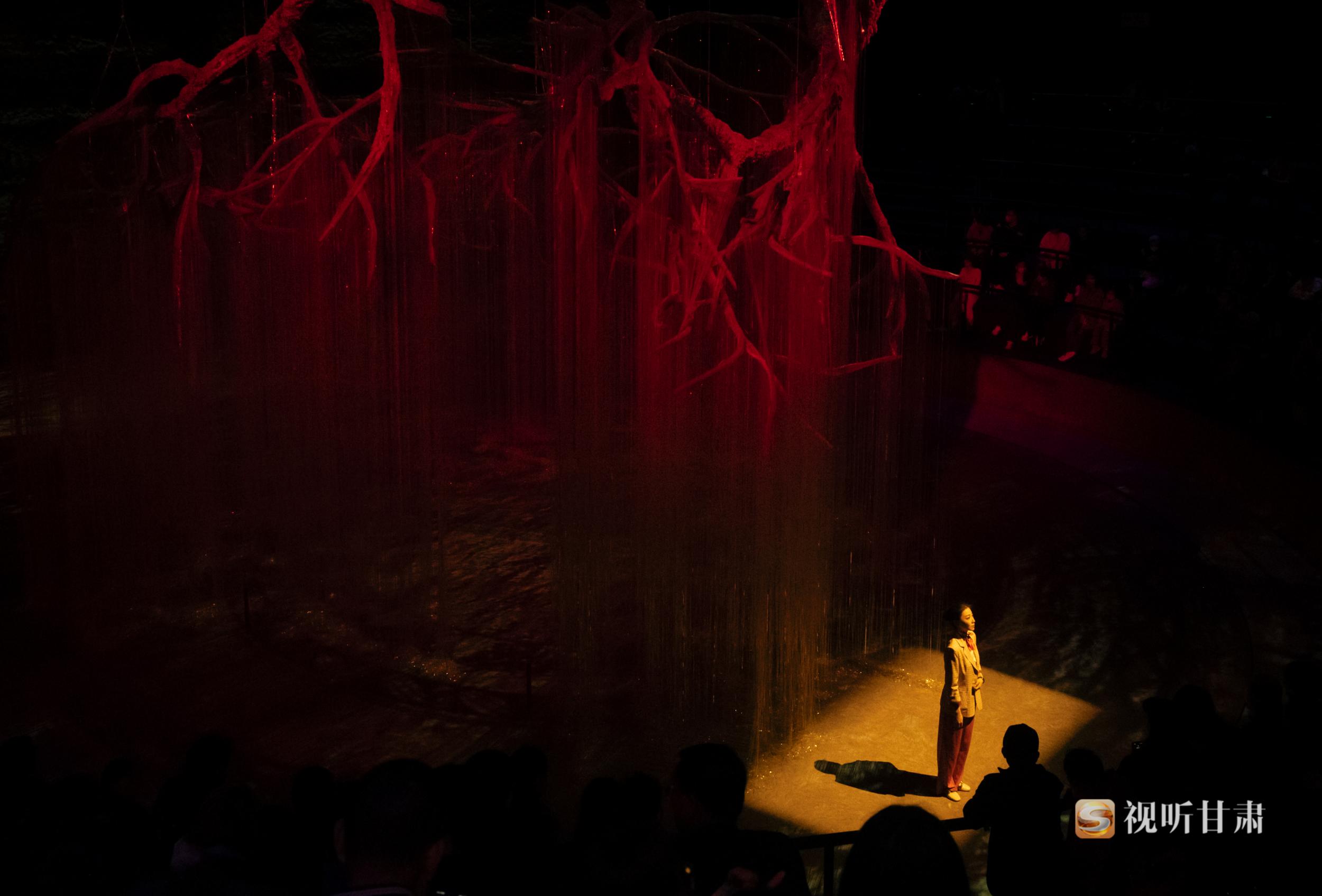 《天水千古秀》劇場內(nèi)部設(shè)置了罕見的,超大型聯(lián)動舞臺機械裝置、3D影像裝置、移動巨幕裝置、首創(chuàng)了許多特技效果,引領(lǐng)觀眾進入壯觀瑰麗的幻境空間。不同于以往坐在觀眾席的觀演體驗,《天水千古秀》的觀眾是以邊走邊看的形式觀看演出,通過上、下兩條情景通道,在多維度的劇場空間內(nèi)與歷史人物互動,感受身臨其境的奇妙體驗。演出采用邊行走邊觀看的形式,使觀眾感受到的不僅限于平面,而是在多維度表演空間內(nèi)與歷史人物互動,感受身臨其境的奇妙體驗,運用現(xiàn)代的思考方式探索天水的遠古世界,來深入探索伏羲哲學(xué)“陰陽”世界觀,以“沉浸式”的方式讓觀眾更加直觀的感受歷史、貼近歷史。