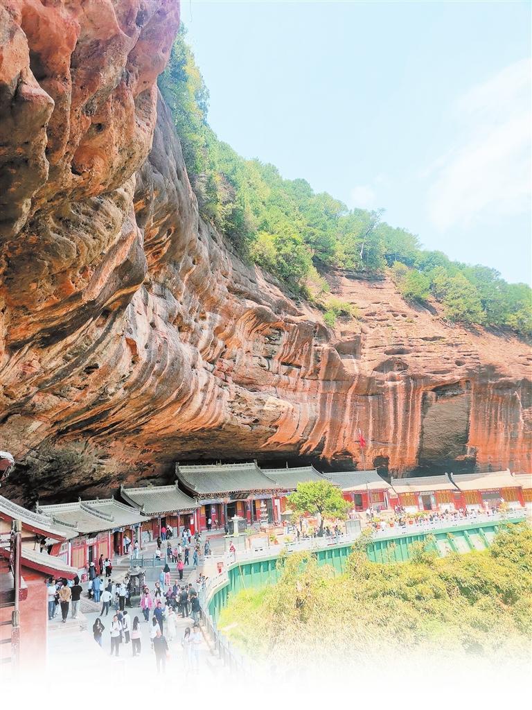 游客在天水仙人崖景區(qū)游覽。