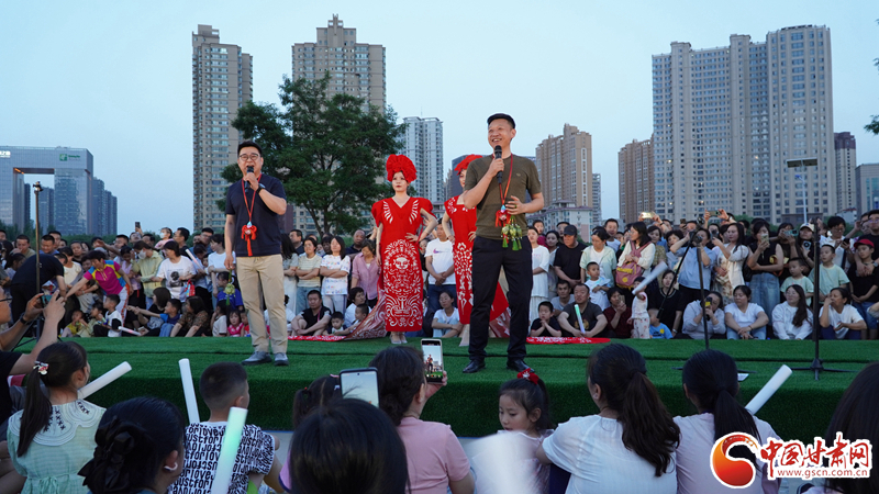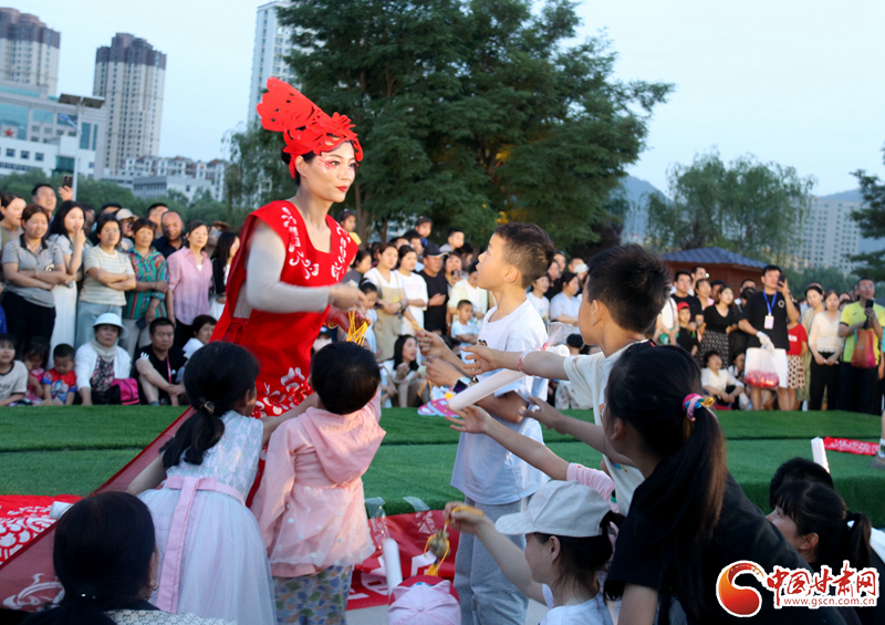 來自鎮(zhèn)原縣文化館的工作人員身著剪紙服飾,為現(xiàn)場觀眾送上慶陽香包,向觀眾們展示慶陽獨(dú)特的鄉(xiāng)土風(fēng)情。