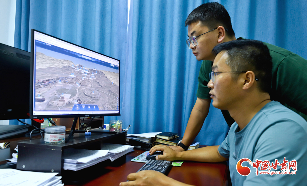 6月27日,甘肅省張掖市山丹縣漢明長城保護(hù)研究中心工作人員正在三維數(shù)字化平臺進(jìn)行長城和烽火臺的數(shù)據(jù)測量。