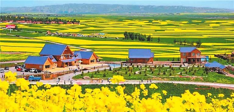 眺望遠處,一座座大山傲然聳立在半空中,和云朵擦肩而過,山上綠樹成蔭,空氣十分清新。最美的還是田野,爬上山頂往下看,除了空中飛行的鳥兒,一眼望不到邊的是綠油油的田野。227國道將村莊分割為東、西兩塊大小不等的地域,金黃的千畝油菜花海,夾雜著大麥、馬鈴薯的碧綠條塊,環(huán)繞在村莊四周。人工栽植的云杉松柏、紫葉矮櫻等苗木高低起伏地相擁在家家戶戶的房前屋后,坐落在油菜花海和綠樹環(huán)繞中的村莊與小康農(nóng)舍,恰似航船一樣在金黃的花海中漂浮升沉著,煞是美麗。正是這宜業(yè)宜居、可憩可游、美麗愜意的鄉(xiāng)村生活環(huán)境,讓炒面莊贏得“美麗鄉(xiāng)村”示范村和“環(huán)境整潔村”的美譽。