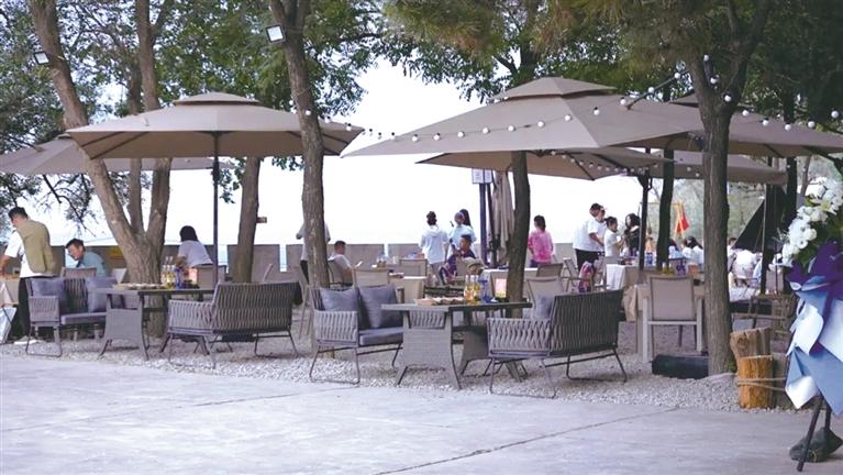 除了優(yōu)美的環(huán)境外,園區(qū)內(nèi)文旅業(yè)態(tài)也十分豐富,有望河樓、紫云樓、怡翠亭三處高端餐飲,主打餐飲品牌“如意樂宴”,共有5個各具特色的主題包廂和1個文創(chuàng)餐廳,可以提供環(huán)境幽雅的高端私享空間,適合商務(wù)宴請、親朋聚會。望河樓內(nèi)還有露天火鍋和咖啡酒吧,帶來“白咖夜酒”的浪漫體驗(yàn)。