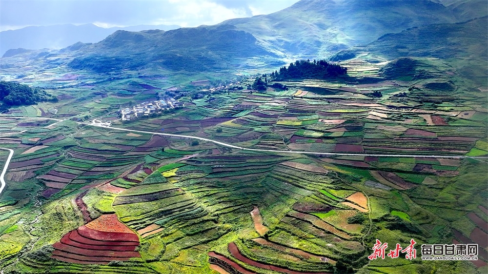 高山花海,紅土梯田,秋日的隴南武都云上馬營(yíng)猶如一頂七彩的花環(huán),圍繞在高山之巔,清新濕潤(rùn)的空氣中,飄著淡淡的花香和藥香,光影交織在松樹林和村莊之間,一陣風(fēng)吹過,仿佛整片大地都與陽光在輕柔地呼吸。