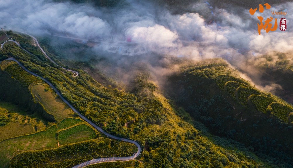 空中俯瞰,裊裊升騰的云霧、郁郁蔥蔥的山嶺,蜿蜒曲折的山路,不僅讓人感嘆:黃土塬上處處皆風景。