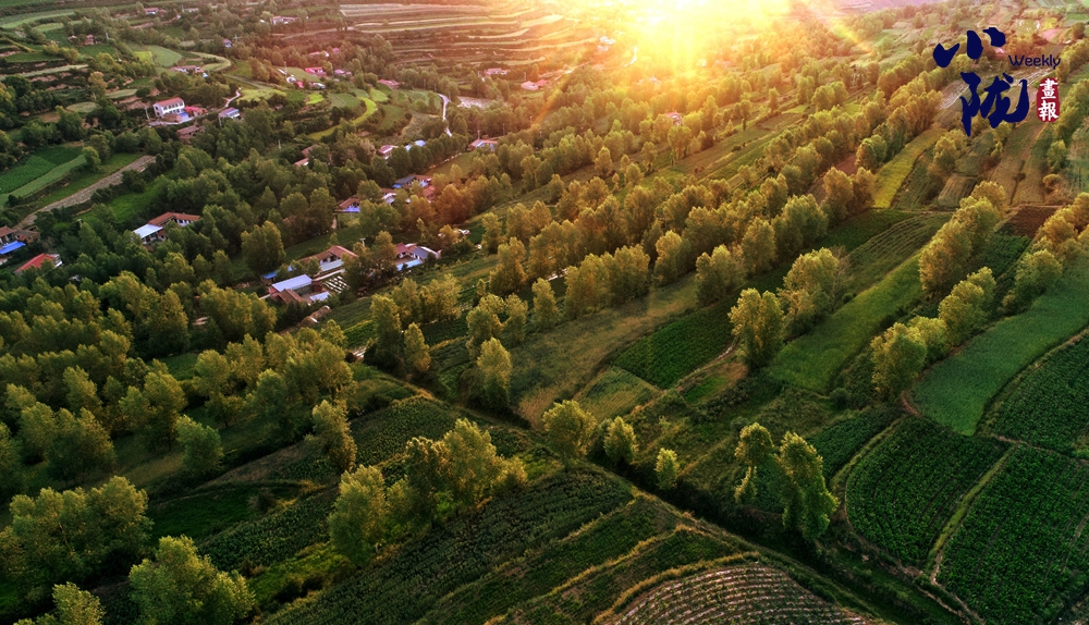 農田與村莊、河流、綠樹交相輝映,與晨光交織在一起,形成一幅溫馨的畫面。此時的村落,靜謐而祥和。