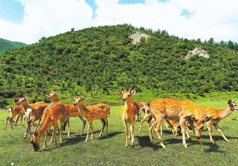 鹿場南環(huán)大山、北繞黃長拉山,是個(gè)天然牧場。慢步走近活潑可愛的梅花鹿,不禁想起“鹿乃仙獸,自能樂性,鹿之一身皆益人”。這是李時(shí)珍在《本草綱目》中對梅花鹿的評價(jià)。一直以來,梅花鹿在民間百姓心中都是長壽幸福的象征。