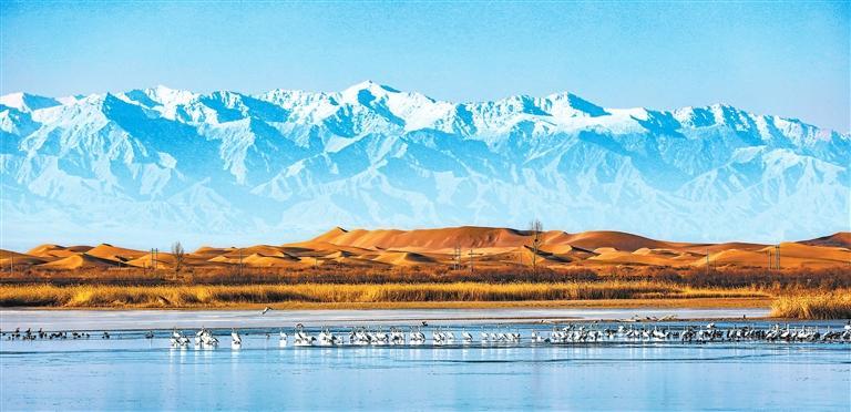橫亙?cè)谖覈鞅辈康钠钸B山脈,在它的南部形成了中國第一大內(nèi)陸咸水湖青海湖和青海境內(nèi)的第二大湖泊哈拉湖。而在它的最北部,石羊河、黑河、討賴河、疏勒河則孕育出以河西四郡為代表的片片綠洲,造就出河西走廊這條連接中外文明、連接起中國四大板塊、成就數(shù)千年民族交融的黃金大通道。