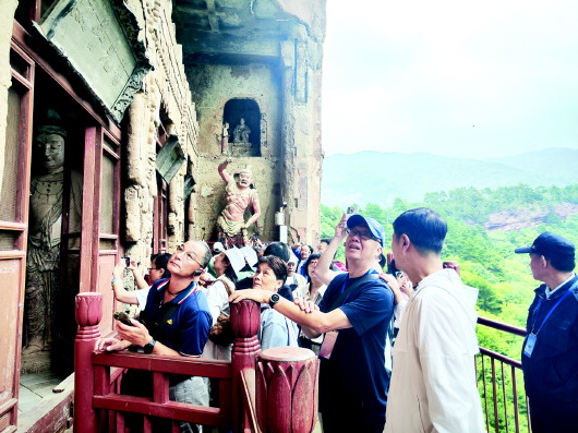 活動當天,來自臺灣文博領域的專家學者一行,懷著對古老文化的敬仰與憧憬,在麥積山石窟感受石窟藝術的獨特魅力、在天水工業(yè)博物館探尋工業(yè)發(fā)展的歷史脈絡、在伏羲廟體悟中華始祖文化的博大精深、在天水市博物館領略豐富的歷史文物承載的歲月記憶、在天水古城品味古色古香的韻味與風情……一系列豐富多彩的文化交流活動,讓他們近距離感受到了古城天水的風景名勝、文化遺產保護傳承及山川風物。