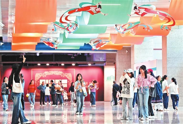 文化展覽是敦煌文博會的一大亮點(diǎn)。本屆文博會重點(diǎn)舉辦“敦煌研究院‘典范’‘高地’建設(shè)成果展、交響絲路·多彩華章——絲綢之路文明展、匠心傳承·創(chuàng)意綻放——非遺及文創(chuàng)精品展、絲路丹青·敦煌映像——美術(shù)精品展、‘南北之光’中國·烏拉圭攝影藝術(shù)交流展”等5項(xiàng)展覽,為海內(nèi)外嘉賓獻(xiàn)上文化盛宴。