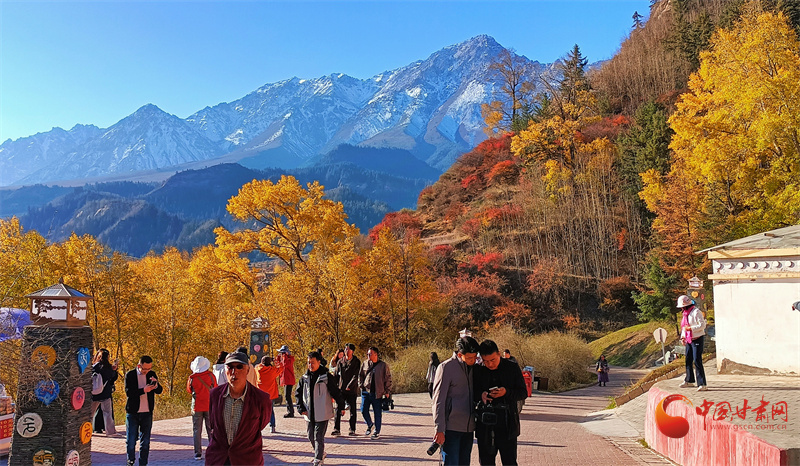 雪山之下,層林盡染,秋日的馬蹄寺美不勝收,裕固歌聲從北寺傳來,身著裕固服飾的歌者為游客帶來最炫民族風。