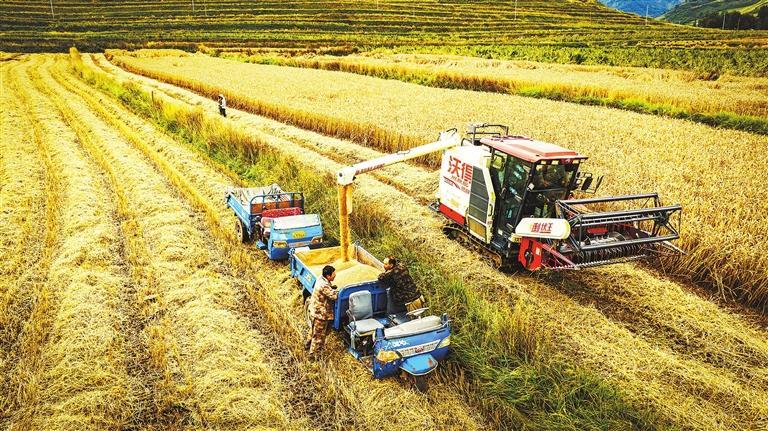 金秋時節(jié),千里隴原沃野飄香,一派豐收景象。定西市的馬鈴薯、甘谷縣的辣椒、武都區(qū)的優(yōu)質(zhì)水稻、張掖的制種玉米、酒泉和嘉峪關(guān)的制種南瓜……我省秋糧收獲漸次鋪開,一幅幅秋收圖景撲面而來,收獲的喜悅洋溢在農(nóng)戶的臉上。