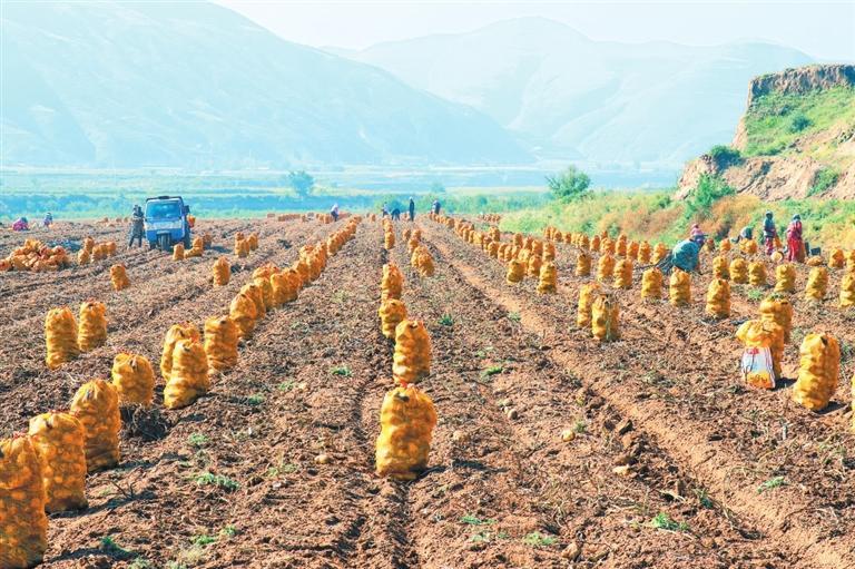 定西市安定區(qū)魯家溝鎮(zhèn)村民在分揀、裝運收獲的馬鈴薯。新甘肅·甘肅日報通訊員 胡耀偉