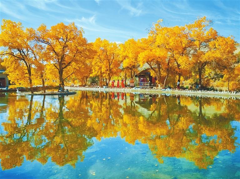 層林盡染的興隆山國家級(jí)自然保護(hù)區(qū),紅黃綠相間、滿目絢麗、美不勝收;置身在民樂縣西區(qū)公園,近可抬眼觀紅葉,遠(yuǎn)可舉目望雪山,天如洗,湖如鏡,令人心曠神怡;以壯麗胡楊林景觀聞名遐邇的阿克塞縣胡楊峽景區(qū),金黃色的葉片在陽光下閃閃發(fā)光,形成一道亮麗的風(fēng)景線;在蔚藍(lán)天空的映襯下,秋日的陽關(guān)遺址更顯雄渾肅穆;暖陽下,旅客乘坐蘭張高鐵出行,欣賞秋天饋贈(zèng)的每一道風(fēng)景……