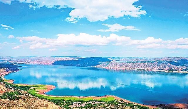 炳靈湖 雄偉的劉家峽大壩阻斷黃河,在永靖境內(nèi)聚成了一座高峽平湖。因這座湖毗鄰炳靈寺石窟和雄奇險(xiǎn)秀的炳靈石林,故稱其為炳靈湖。整個(gè)湖水,在夏秋季呈綠色,就像一塊翡翠鑲嵌在群山之中,散發(fā)著耀眼的光芒,夏秋呈翡翠色,冬春呈藍(lán)色,由于水質(zhì)清澈,群山倒映水中,水天一色,加之湖面廣闊無垠,看上去平靜如海。但每當(dāng)劉家峽水庫(kù)泄洪的時(shí)候,磅礴的氣勢(shì)猶如蛟龍出水,翻江倒海,氣沖云天。